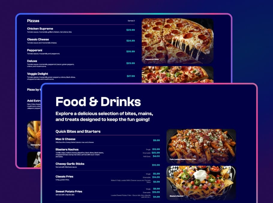 The finished site captures the playful energy of Bowls & Blasters and makes it easy for users to engage with. Visitors can explore the arcade and bowling options, browse the food menu, and plan their visit using a layout that works across all screen sizes. The design is fun but never chaotic, creating a digital space that supports the in-person experience with clarity and energy.