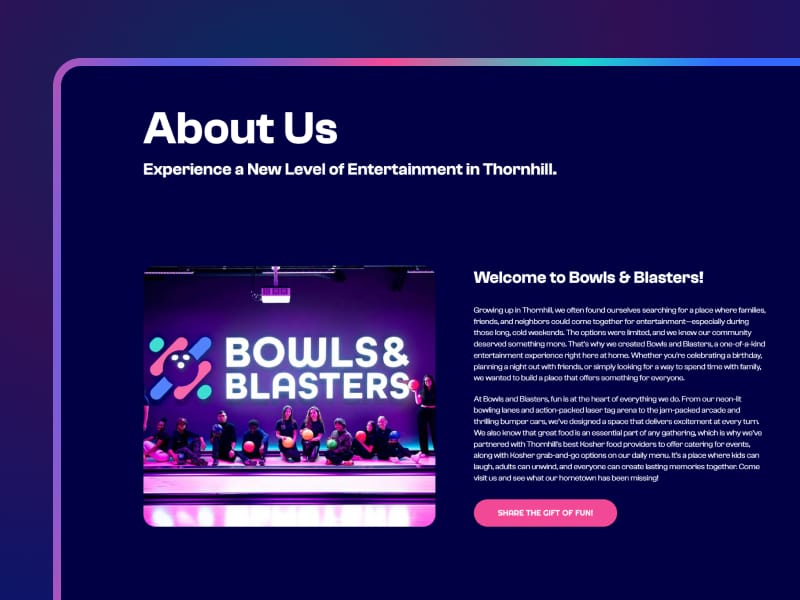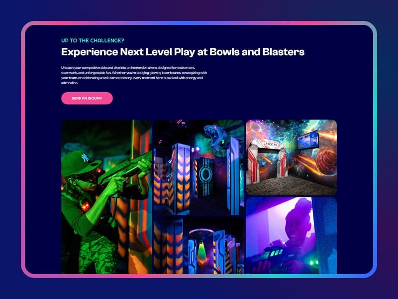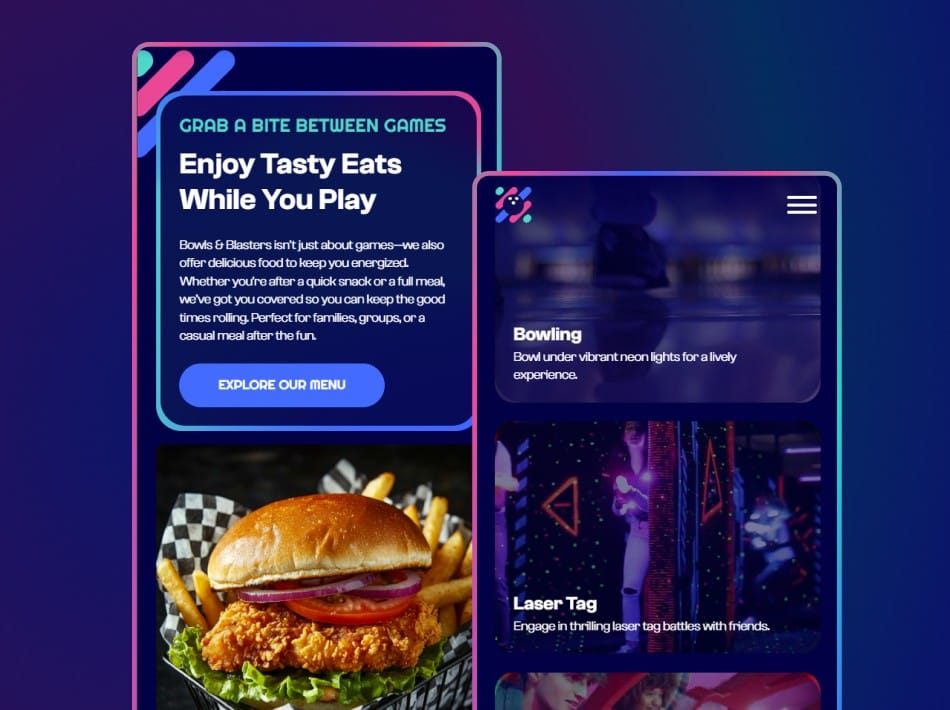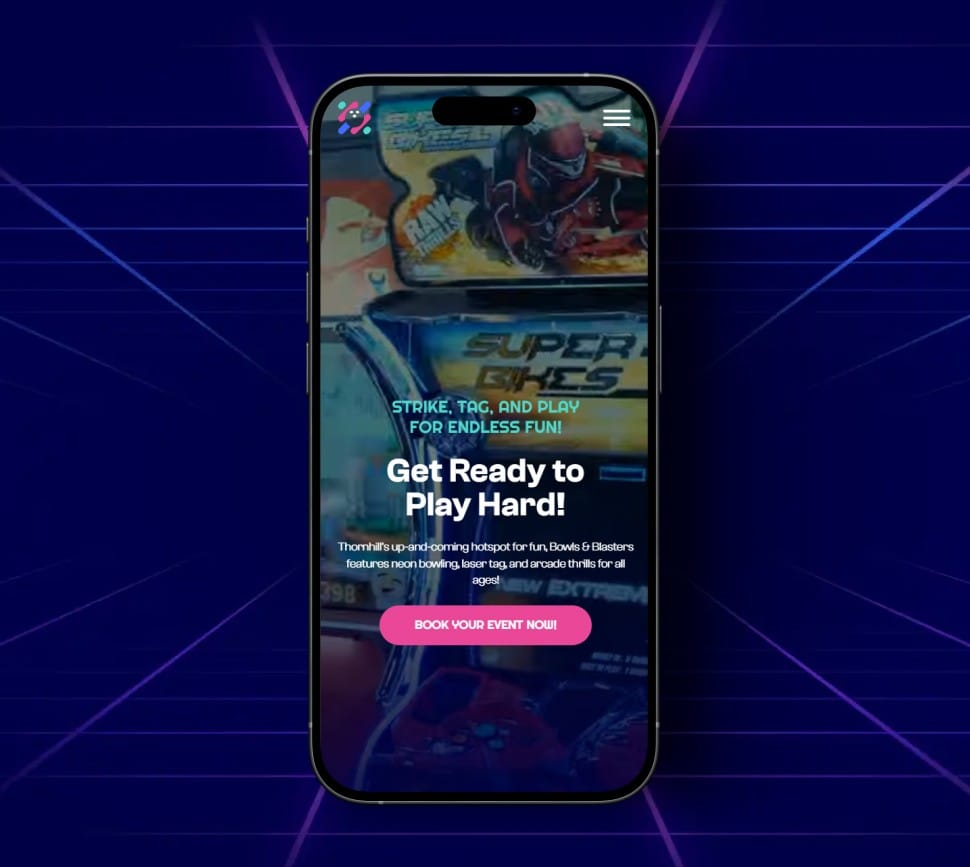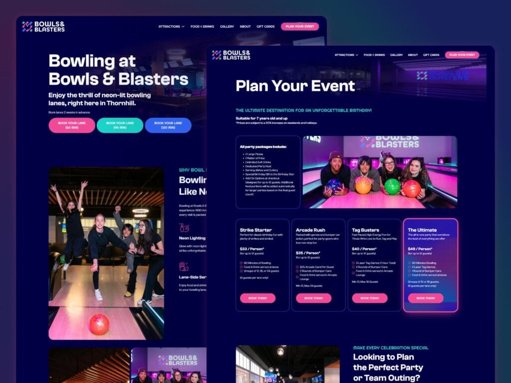 Bowls & Blasters is a vibrant new entertainment venue blending bowling, arcade games, and casual dining in one lively space. Built for families, friends, and weekend warriors, the brand delivers an immersive experience filled with neon colors, upbeat vibes, and plenty of chances to unwind and connect. With a strong brand identity already in place, they came to us looking to bring it all together online.