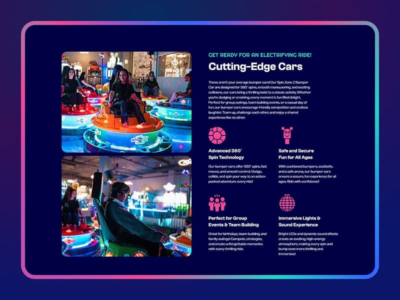 We ensured the website aligned with the brand’s colorful personality while keeping things clean, accessible, and responsive. Our approach combined energetic visuals, modern typography, and smooth animations to help visitors feel the vibe from the moment they land. By using vibrant background elements, bold section breaks, and mobile-friendly layouts, we captured the spirit of the venue without overwhelming the user.