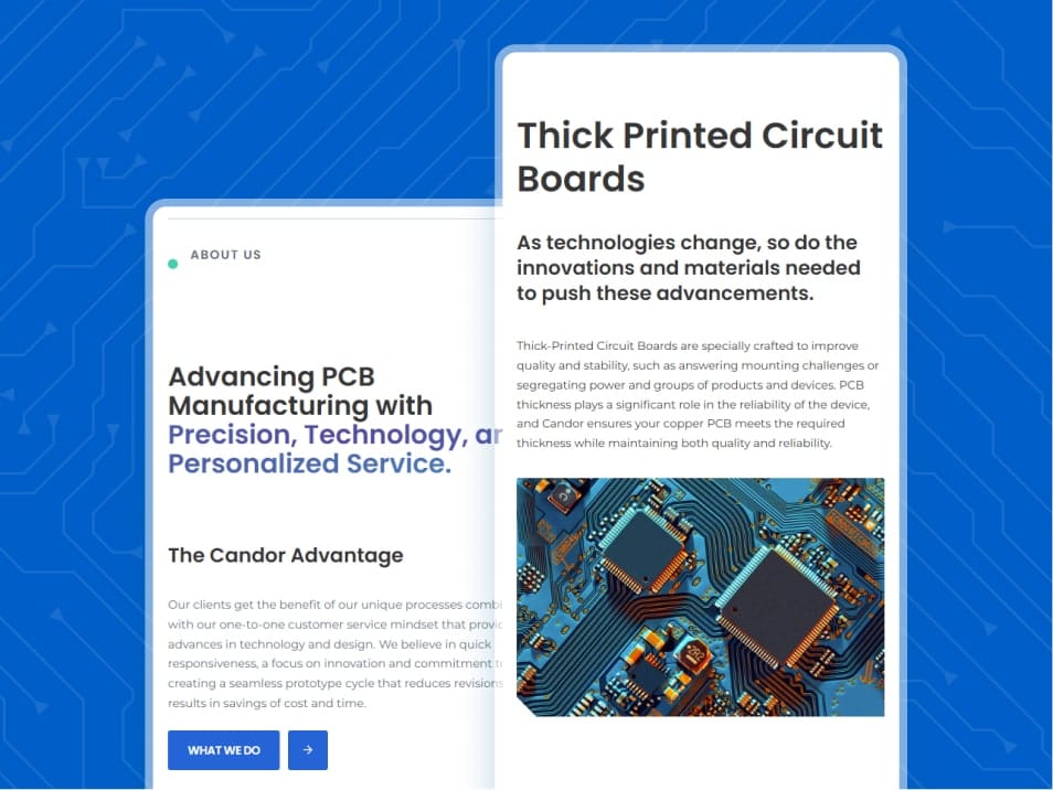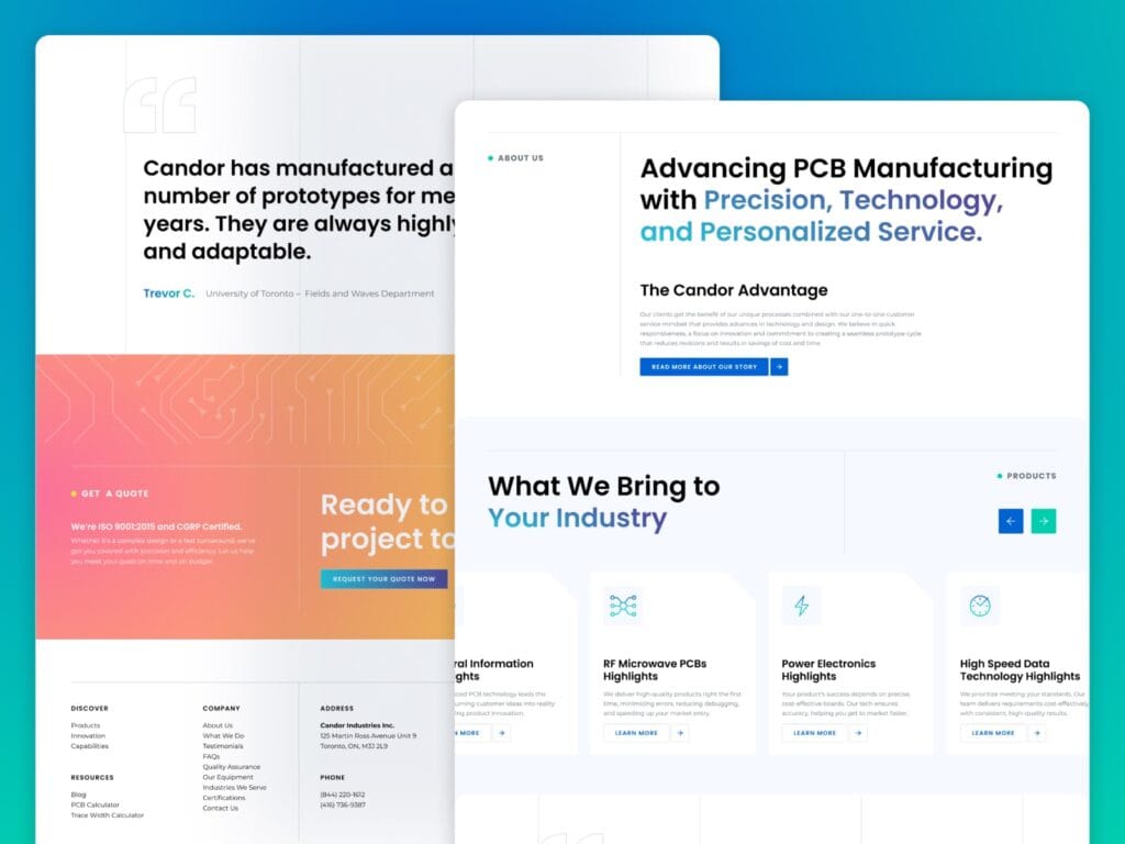 The redesigned site clearly showcases Candor’s expertise in high-performance PCB manufacturing, making complex technical information accessible and easy to navigate. Clients from industries like telecom, aerospace, and medical can quickly find the specific solutions they need and request quotes with confidence. The site highlights Candor’s commitment to innovation, quality assurance, and environmentally responsible processes, helping to strengthen trust and support business growth.