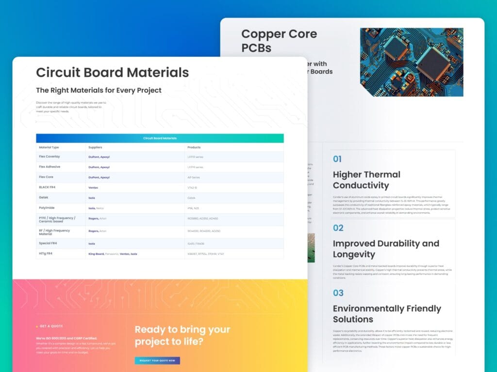The new website features a PCB calculator that allows users to quickly estimate manufacturing costs by entering key parameters such as layer count, dimensions, and copper weight. This tool provides instant and reliable cost estimates to support informed decision-making. Additionally, technical tables across the site are designed to be clean, easy to read, and fully responsive, ensuring critical information is accessible on any device. Together, these features enhance the user experience by combining precision with clarity.
