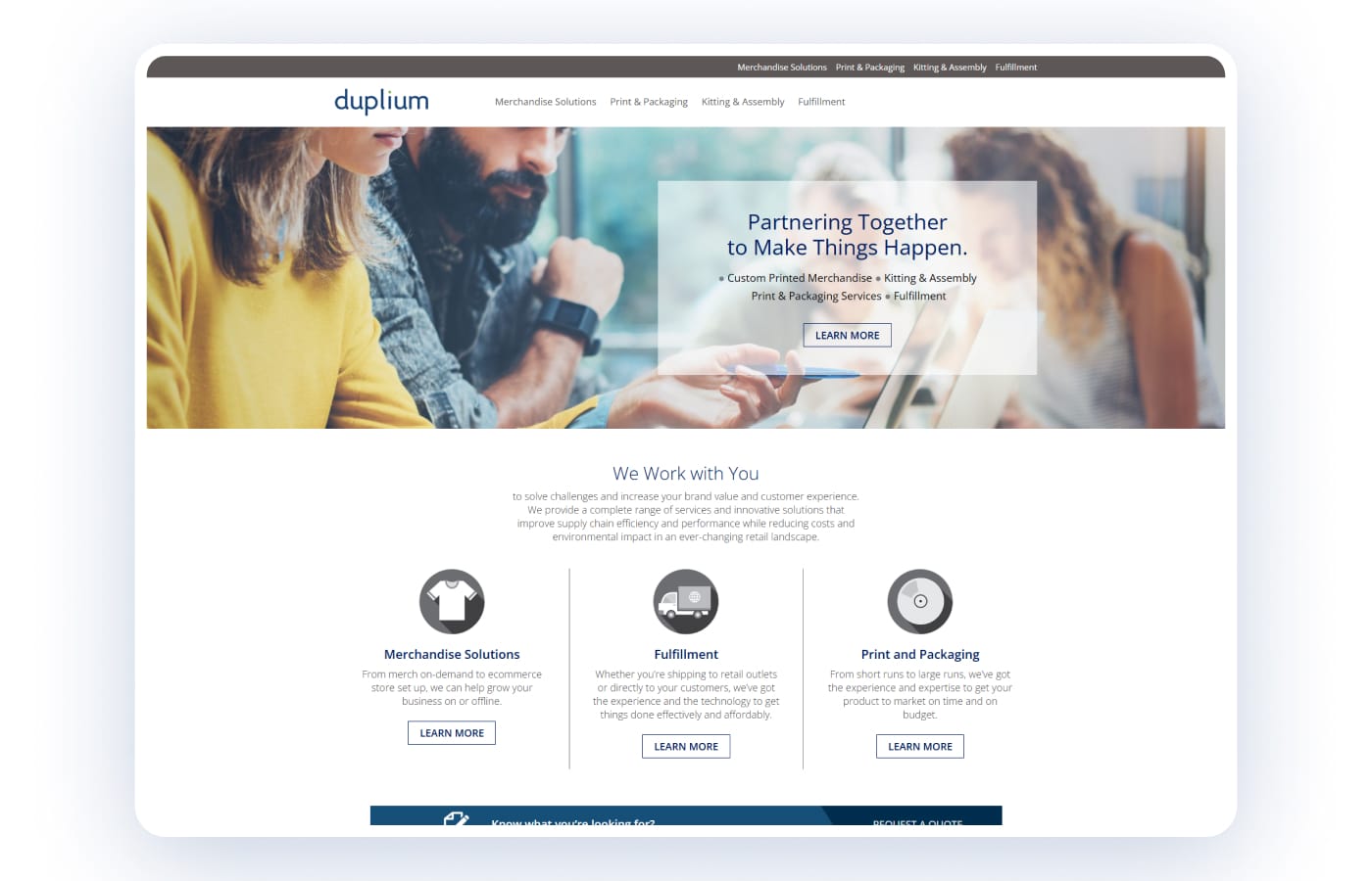The previous website did not reflect Duplium’s growth or professionalism. Visually outdated and lacking structure, it failed to showcase the company’s expanded service offerings. There was no streamlined way for clients to understand their options, explore capabilities, or take the next step. As a result, the brand came across as less advanced than it truly is. The team needed a refreshed online presence that better communicated their value and created a clearer path for clients to engage.