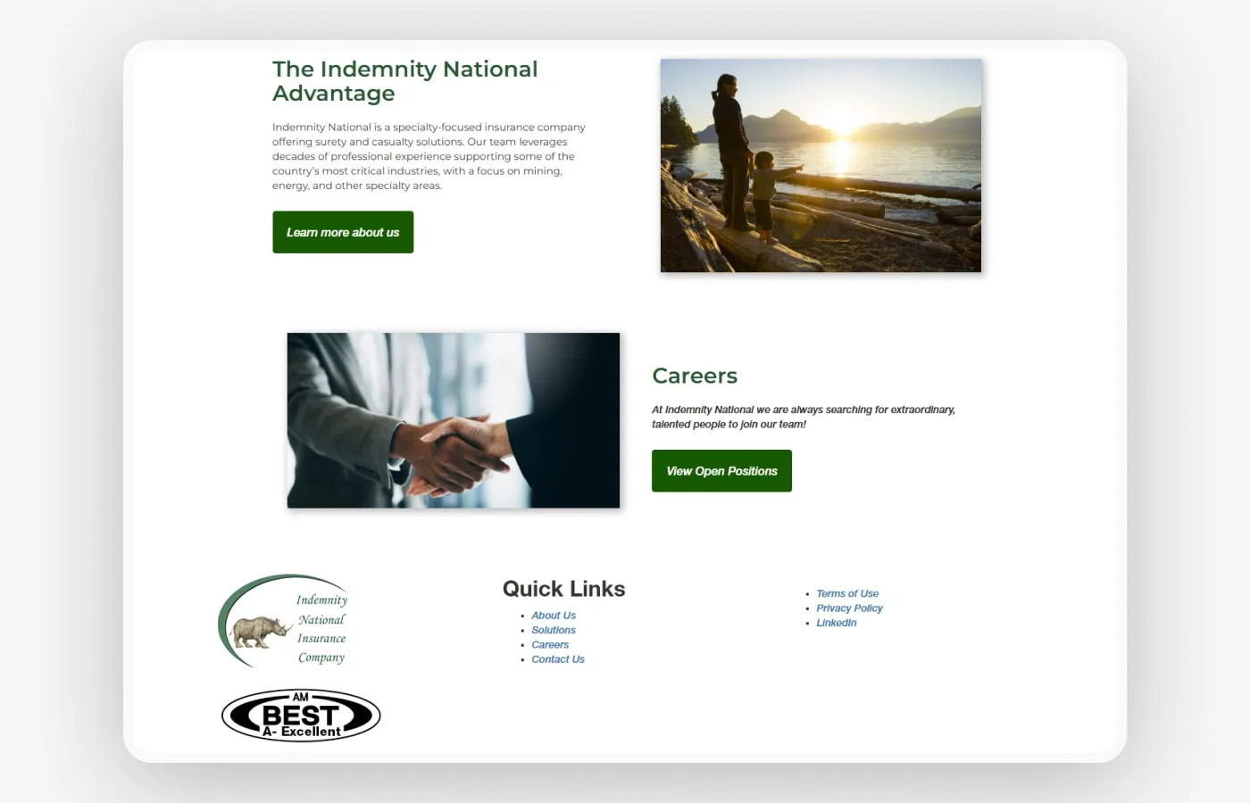 The finished site feels modern, steady, and built with intention. Its polished layout and restrained use of motion allow the content to lead, while design choices like soft transitions and layered typography add refinement without distraction. Users now experience a digital presence that reflects Indemnity National’s professionalism and focus, with information that’s easier to access and a look that feels aligned with their role in protecting critical industries. The redesign brings lasting clarity to a brand rooted in trust and purpose.