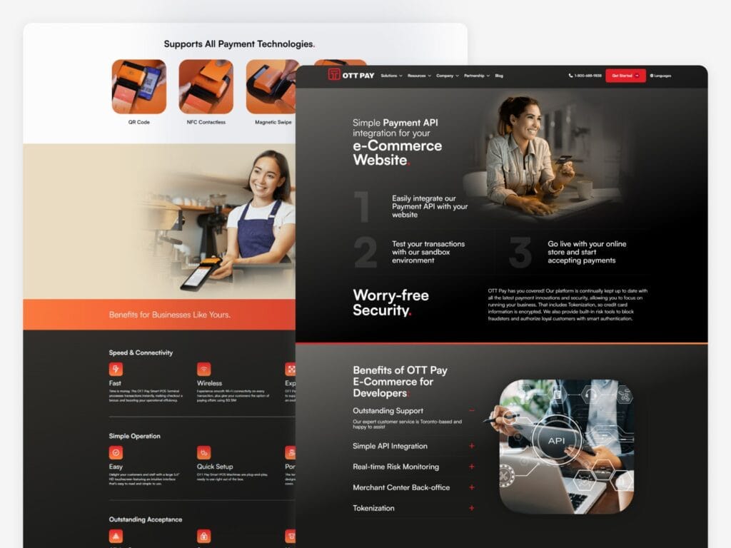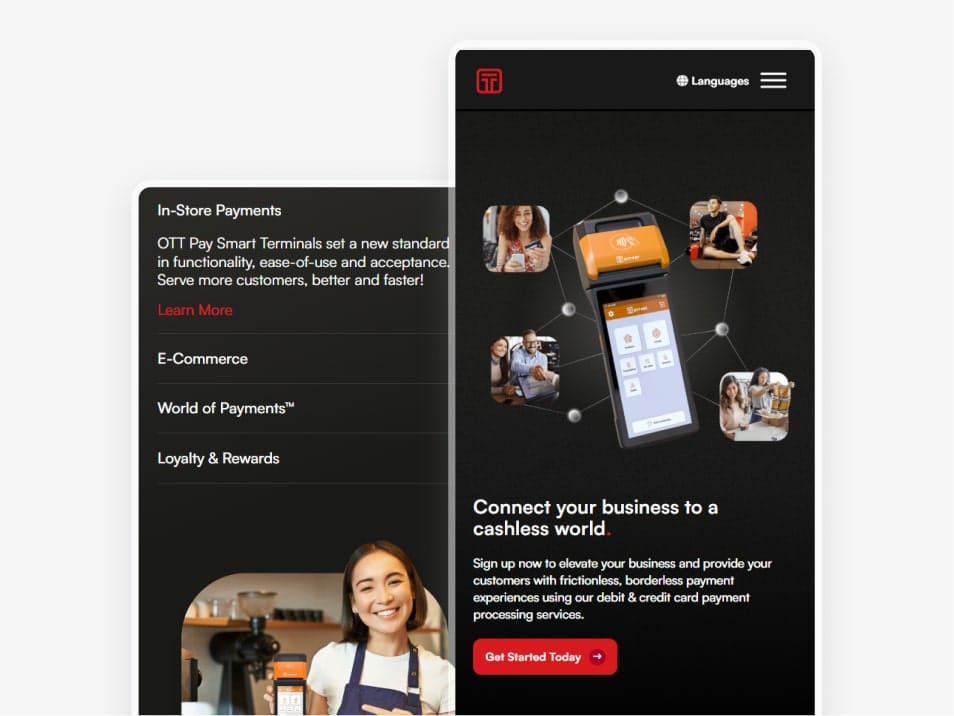 The new OTT Pay website is sleek, functional, and designed to engage. It better communicates the company’s fintech expertise while providing a smoother experience for potential clients and partners. The visuals now align with the quality of their service, and the updated layout brings a more premium feel to the entire experience.